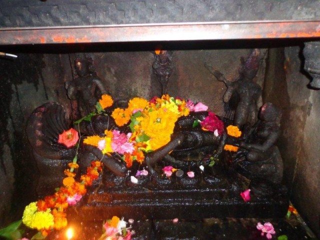 Anyway after around one hour in he queue we managed to have darshan of great Trimbak Jyotirlinga. The jyotirlinga is little bit down below around three feet in the garbagriha . One has to go down through steps from the door and reach there if he is to touch the linga. But in Trimbakeshwar Jyotirlinga only a male person who performs abhishekh along with pandits are allowed to touch the linga hence you have viewed this linga from the entrance of the garbagriha itself.I will tell one thing for sure when one has the darshan of this great linga for just a few seconds, he/she feels great power and sense of bliss and blessings from the Lord. Then after the darshan, one can have peaceful reflective darshan of the Lord in the mirror attached by sitting in the middle of the dome inside the temple.