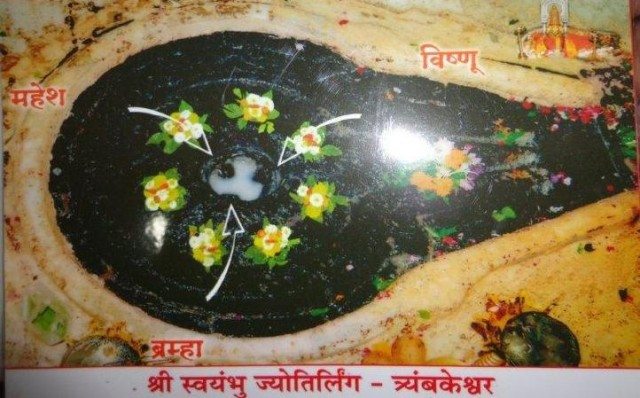 Lord Shiva along with Lord Vishnu and Lord Brahma remained here in the form of Linga . Hence in trimbakeshwar, there is no pindi in the linga , There is yoni and a hole in between. Inside the hole there are three pindies denoting Brahma , Vishnu and Mahesh.This linga is most unique among all the twelve Jyotirlingas of Lord Shiva due to shape and presence of the trinities.